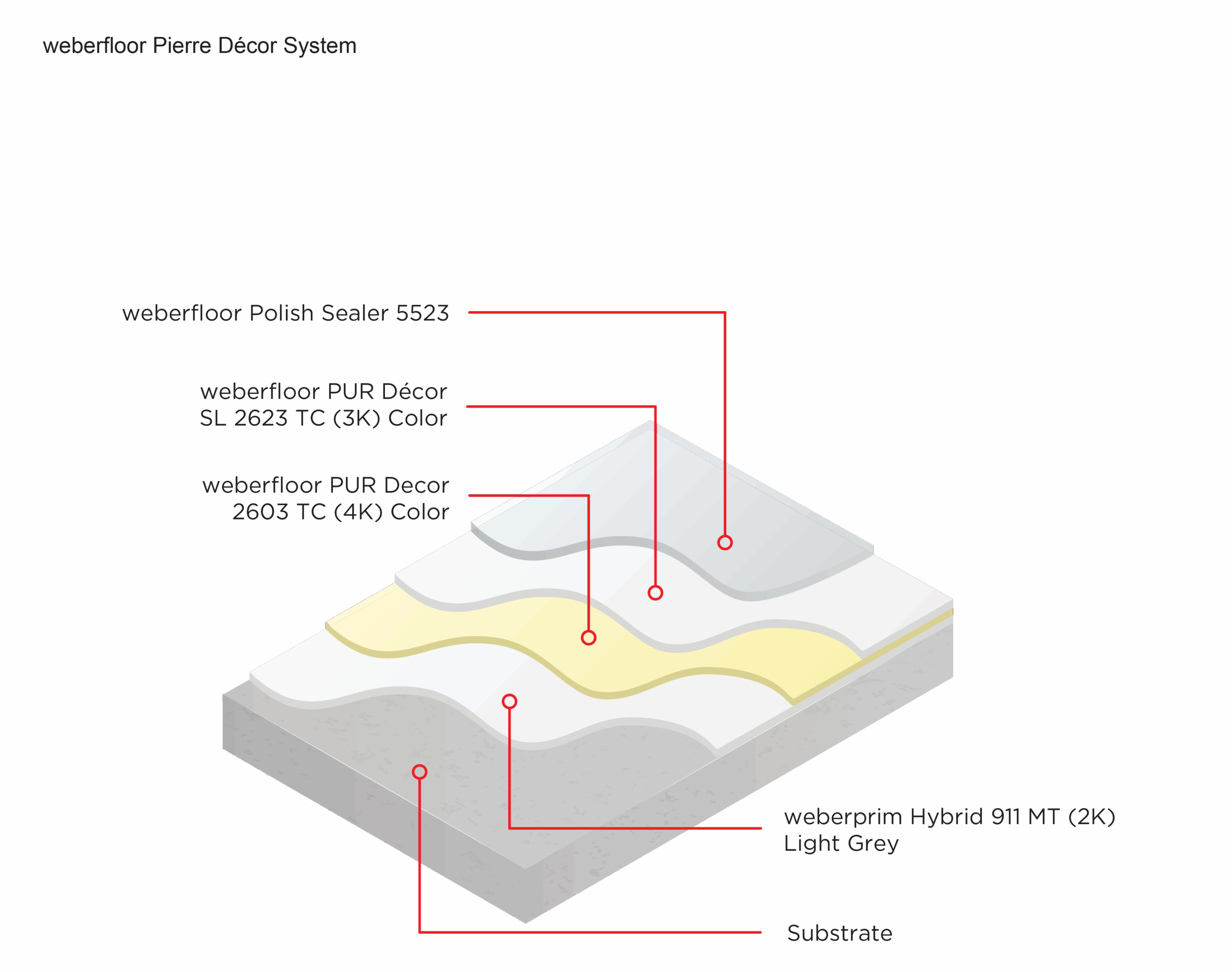 weberfloor Pierre Décor System adalah solusi lantai berbasis Polyurethane tanpa sambungan, dengan tampilan terazzo yang estetis. Produk ini menawarkan daya tahan tinggi, stabilitas UV, dan fleksibilitas estetika, menjadikannya cocok untuk aplikasi dalam dan luar ruangan, termasuk area basah dan furnitur.